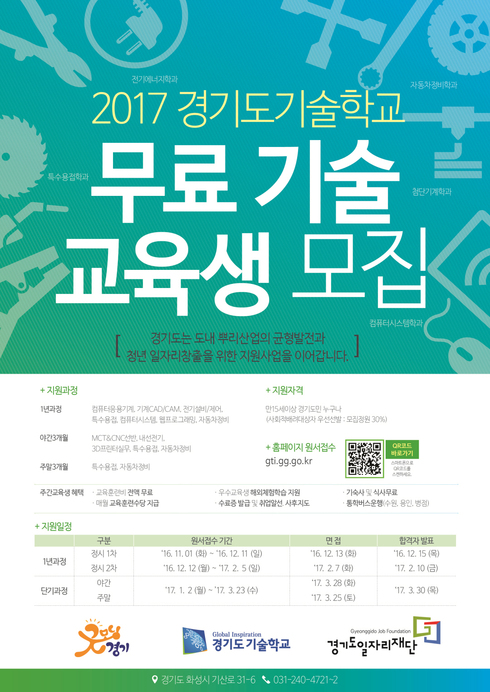 정시 2차 모집 접수는 내년 2월 5일까지 경기도기술학교 홈페이지(gti.gg.go.kr)를 통해 진행된다.