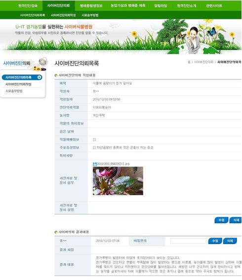 경기도가 병해충으로 인한 농가의 어려움을 신속하게 해결하기 위해 2009년에 문을 연 사이버식물병원은 지난 8년 동안 1,802건을 처리하며 식물들의 생명지킴이로 활약해 왔다고 밝혔다. 최근에는 농가뿐만 아니라 반려식물 애호가들의 진단의뢰가 늘고 있는데 2009년 12건이었던 반려식물 문의는 지난해 74건으로 늘었다. 올해 12월 14일 기준 92건의 반려식물 관련 문의가 접수됐다.