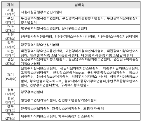 청소년쉼터는 가출 청소년들이 가정·학교·사회로 복귀해 정상적으로 생활할 수 있도록 일정 기간 보호하면서 상담·주거·학업·자립 등을 지원하는 청소년복지시설로 현재 전국 119개가 운영 중이다.
