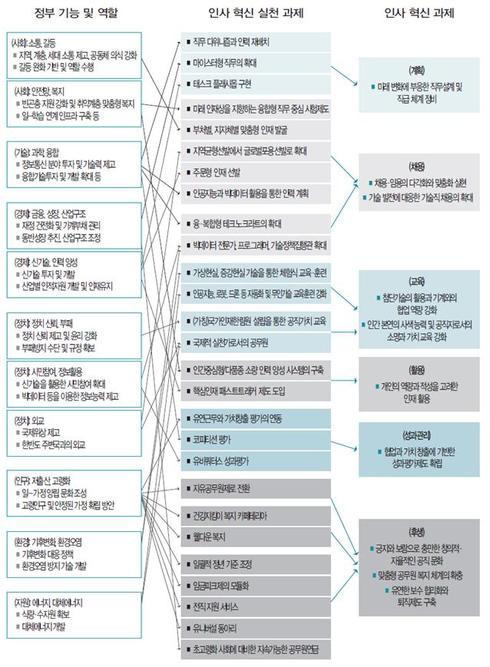또한, 로봇과 인공지능 등 기술 발달에 따른 직무변화를 고려한 인력계획 수립 및 재배치 등 직무 재설계와 직급체계 정비의 필요성과, 로봇과 기계가 대신할 수 없는 창의력, 감수성, 유연성, 사색능력을 가진 감성적 교감형(renaissance type)의 공직 인재상을 주문하며, 로봇과 기계로 효율적 업무수행이 가능해지는 미래 사회에서도 진화, 발전 역량을 갖춘 사람이 중심이며, 미래의 주인공임을 강조하고 있다.