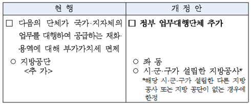 대행사업에 대한 부가가치세 면제는 지방공단에만 국한되어 지방공사는 부가세를 납부해왔다.