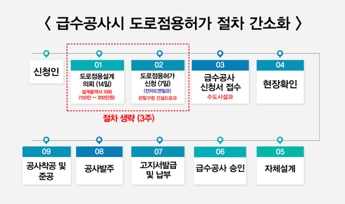 현재는 급수공사를 하려면 도로점용이 필요한 경우 신청자가 설계사에 용역을 의뢰해 구청 건설도로과에 도로점용허가를 받은 뒤 수도시설과에 신청해야 한다. 이때 설계도면 등 허가신청에 필요한 서류작성 대행 비용이 1건당 150만~200만원이 들고 도로점용허가신청에만 3주가 소요되는 등 시민들의 부담이 컸다.
