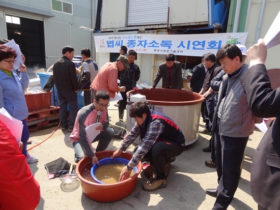 【경기인뉴스】임성택 기자 = 화성시 농업기술센터는 8일 화성농산RPC에서 관내 농업인과 관계공무원 50여명이 참석한 가운데 볍씨 종자소독 및 적량파종 연시회를 개최했다.