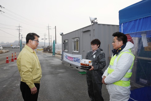 조 시장은 점심시간에 맞춰 근무자들에게 전해 줄 도시락을 갖고 AI 초소를 찾아가서 근무자들의 노고를 격려했다. 조 시장은 이 자리에서 근무자들이 겪고 있는 애로사항 등을 묻고는 비록 몸과 마음이 힘들겠지만, 조금만 힘을 내어 AI를 조기에 종식하자고 말했다.