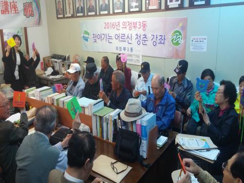 [시사인경제]의정부3동주민센터는 2015년부터 특수시책의 일환으로 실시한 찾아가는 어르신 청춘 강좌가 2016년에도 12회 강좌를 모두 무사히 마쳤다고 밝혔다.