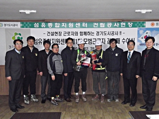 【경기인뉴스】채의선 기자 = 경기도시공사(사장 이재영)는 원·하도급간 상생협력 분위기 확산을 위해 지난 2월 28일 경기도시공사 주관으로 매월 개최하는 양주 섬유종합지원센터 상생협의체 회의에서 현장 근로자에게 감사패와 금일봉을 전달하였다고 5일 밝혔다..이번 감사패와 금일봉 전달은 건설현장 구성원들간의 상생협력 분위기 확산 및 현장근로자들의 사기 진작을 위해 경기도시공사에서 처음으로 시행하였다.한편 경기도시공사는 매월 "이 달의 우리 현장 근로자"를 선정하여 감사패를 전달할 계획이다. 책임감을 갖고 성실하게 공사를 수행한 현장 근로자에게 조금이나마 감사하는 마음을 전하고자 함이다.감사패를 받은 근로자는 "앞으로도 계속해서 내 집을 짓는 마음으로 공사를 수행하겠다“며 ”현장 작업자들까지 세세하게 신경을 써 주신 경기도시공사에 감사한다"고 말했다.경기도시공사 복합사업처장(조우현)은 ”현장에서 가장 중요한 것은 근로자의 안전이라며 준공할 때까지 안전하게 공사를 수행해 달라"고 당부하였으며 "현장 작업중 고충이나 애로사항이 있으면 언제든지 경기도시공사로 연락을 주시면 적극적으로 개선하도록 하겠다" 고 말했다.