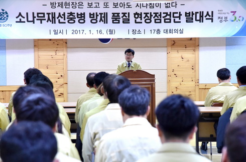 [시사인경제]산림청은 16일 정부대전청사 대회의실에서 ‘소나무재선충병 방제품질 현장점검단 발대식’을 개최했다고 밝혔다.