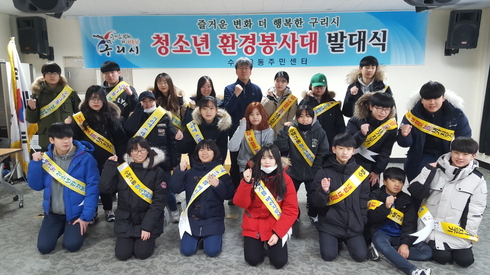 [시사인경제]구리시 수택3동 주민센터에서는 지난 21일 아름다운 마을가꾸기 청소년 환경봉사대 발대식을 갖고 지역의 환경파수꾼으로 출범했다고 밝혔다.