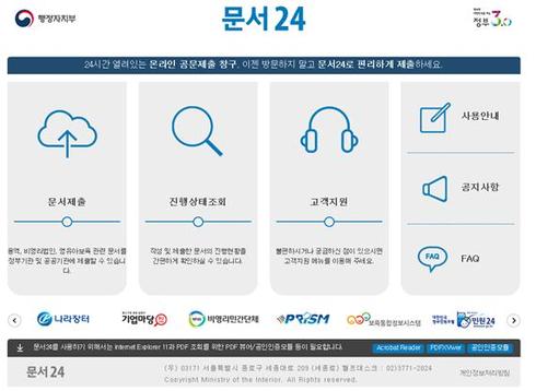 행정자치부는 지난해 7월 ‘비영리법인 관련 문서’와 ‘정부 발주 용역사업 관련 문서’를 인터넷으로 제출할 수 있도록 문서24 서비스를 시범적으로 개시했다.