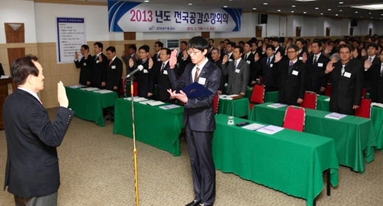 【경기인뉴스】박진영 기자 = 한국농어촌공사(사장 박재순)는 7일부터 이틀간 전남 화순에서 각 지역본부 기반관리팀장, 공감소장 등 300여명이 참석한 가운데 사업현장의 안전․품질관리 강화를 위한 "2013년 전국 공감소장 회의"를 개최했다고 밝혔다. 이날 회의에서는 건설공사 현장의 안전․품질관리 강화 방안, 기후변화 및 FTA 대응 생산기반정비 방안 등에 대한 논의가 이루어졌고, 대농업인 서비스 강화와 청렴도 향상을 위한 자정결의대회도 실시했다. 또한, '공사현장 안전사고 사례 및 대처방안', '농업생산기반정비사업 정책방향' 등을 주제로 한 특강이 있었으며, 우수건설사 및 현장대리인에 대한 표창도 수여했다. 박재순 사장은 "예기치 못한 사고위험에 항상 노출되어 있는 공사현장에서 철저한 사전대비와 신속한 복구로 재해예방 및 안전관리에 만전을 기하고, 엄정한 업무처리는 물론 부정부패 차단을 위해서도 최선의 노력을 다할 것"을 당부했다.현재 공사는 전국 1,700여개 현장에서 농어촌용수개발 및 경지정리 사업 등이 진행 중으로 820여명의 공사감독이 근무하고 있으며 본격적 영농기에 대비하여 주요공종의 철저한 사전점검 등 현장관리에 만전을 기하고 있다.