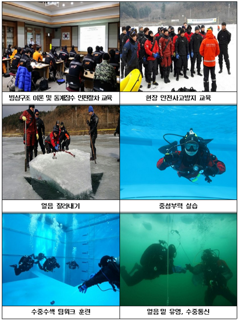 이번 훈련과정은 빙상구조 이론과 얼음 밑 잠수 등 현장실무를 위주로 운영하여 혹한기 수난사고에 대비하여 인명구조 역량을 강화하는데 중점을 두고 실시한다.
