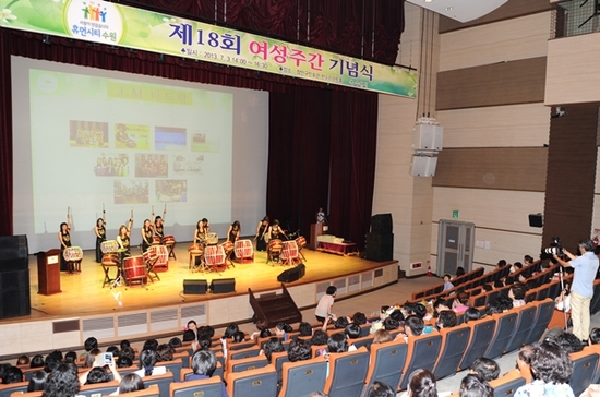 【경기인뉴스】채의선 기자 = 지난 3일 수원시의 장안구민회관 한누리아트홀에서는 여성들이 한자리에 모여 즐거운 오후를 보냈다. 수원시가 개최한 ‘제18회 여성주간 기념행사’는 여성의 발전을 도모하고 양성평등에 관한 범시민적 관심을 높이며 시민과 소통하는 여성주간의 의미를 되새기는 동시에 안전한 여성친화와 가족친화도시를 함께 만들기 위해 마련됐으며, 여성단체 및 다문화가족과 시민 등이 참여해 행사를 함께 즐겼다. J.M 타드락의 모듬북 공연, K Young Pop 어린이댄스팀의 공연, 이문세의 히든싱어로 이름을 알린 김정훈 씨의 무대 등 식전행사가 진행됐다. 기념식에서는 권옥주 수원소방서중부여성의용소방대 대장, 윤운자 전 수원시 새마을부녀회 영통구 회장, 박현옥 수언시여성경영인협의회 회장, 홍성주 권선구 여성자원봉사회 회원 등의 여성상 수상자 4명 및 기·예 경진대회 수상자 30명이 참여해 시상을 받았다.