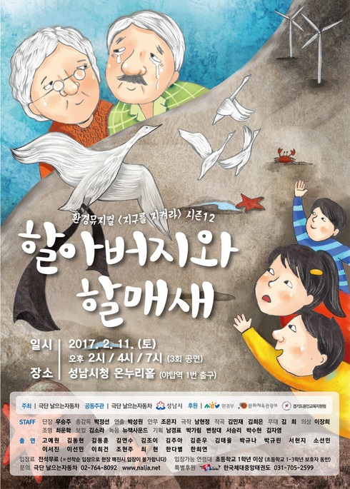 성남시는 사회적기업 극단 ‘날으는자동차’와 공동주관으로 환경뮤지컬 ‘지구를 지켜라’의 시즌 12 ‘할아버지와 할매새’와 시즌13 ‘O2 페스티벌’을 무대에 올린다고 밝혔다.