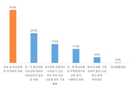 응답자의 62.9%가 트럼프 시대가 한국경제에 미칠 영향을 부정적으로 전망했으며, 미국 우선주의, 동맹국 상호주의를 대표적인 원인으로 꼽았다.