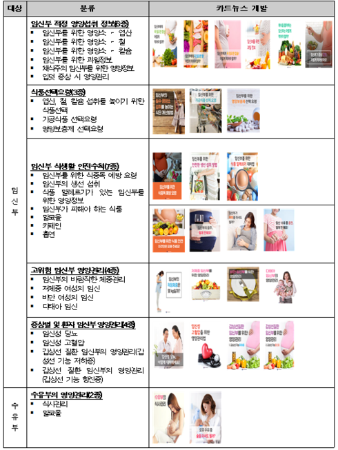 이번에 제공되는 정보는 단순 영양 자료뿐 아니라 구체적인 식품 선택 요령 등 임산부들이 일상생활에서 쉽게 실천할 수 있는 행동요령 위주로 구성했다.