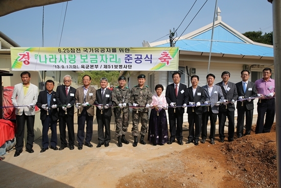 나라사랑 보금자리 사업은 6·25전쟁 참전 국가유공자들을 예우하고 유공자들의 나라를 위한 희생과 헌신을 기리기 위해 육군 차원에서 추진하는 사업 중 하나로, 이날 준공식에는 51사단장과 관할부대장, 옹진군수, 옹진군의회 부의장, 인천보훈지청장을 비롯한 지역 기관장과 후원 기관 관계자, 마을 주민 등 90여명이 참석했다.