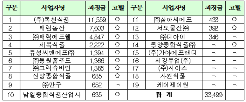 공정위는 이번 담합에 참여한 19개 사업자 모두에 대하여 향후 다시 입찰담합을 하지 말도록 시정명령하고, 이 중 ㈜복천식품 등 13개 사업자에 대해 총 335억 원의 과징금을 부과하며, 12개 업체에 대해서는 검찰 고발을 결정했다.