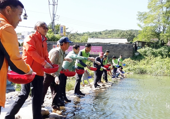 수원천의 생물다양성 보전·복원 위해 다슬기 방사