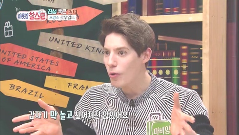 이 모습을 본 프랑스 출신인 파비앙은 “프랑스 교육이 엄격하다”라고 운을 띄우며 “성인이 되면 뭘 하든 자유롭게 행동 할 수 있다”고 덧붙였다. 이어 홍석천이 파비앙은 어땠냐고 묻자 파비앙은 “엄청 놀거나, 확 풀어지지는 않았다”라고 답했다. 홍석천과 사유리는 “의아하다. 믿기 힘들다.”라는 반응을 보이며 파비앙을 당혹케 했다.