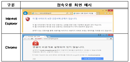 | 웹브라우저에서 ‘본 연결은 신뢰할 수 없음’ 경고창 발생 |