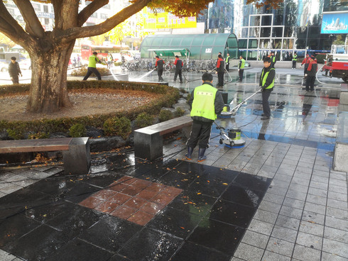 광장 대청소는 출근 시간을 피해 오전 9시부터 정오까지 진행되며, 청소 작업 구간의 시민 통행을 일부 통제한다.