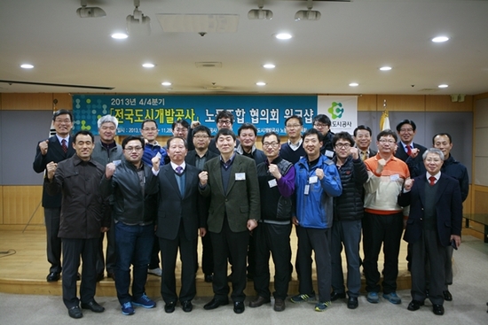 【경기인뉴스】임성택 기자 = 28일 오후 3시 경기도시공사 본사에서 2013년도 4분기 전국도시개발공사 노동조합 협의회(의장단 광주도시공사) 워크숍을 개최했다. 전국도시개발공사 노동조합 협의회는 전국 광역자치단체에서 도시개발부분의 역할을 담당하는 지방공기업 노동조합 간 협의체이며, 전국도시개발공사 노동조합 협의회 워크숍은 2007년 3월부터 시작하여 분기별로 개최하며, 도시개발공사의 역할․각 단사의 현안 등에 대한 토론과 정보교환을 통해, 지방공기업의 보다 발전할 수 있는 모습을 노동조합에서 이끌고 가자는 공통된 목표로 추진되어 온 행사이다. 이번 2013년도 4분기 워크숍은 경기도시공사에서 주최하였으며, 이날 노무사의 근로기준법 입법동향에 대하여 강의를 필두로, 14개단사의 노조집행부는 현재 각단사의 문제점과 극복 방향․지방도시개발공사와 유사 국가공기업간의 차별점 등에 대하여 집중적으로 논의했다.