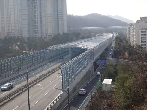 | 분당 산운마을 관통 도로에 방음터널·벽 설치 완료돼 |