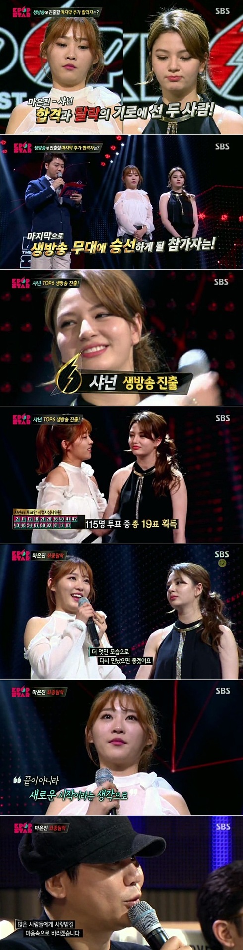 최종 탈락자가 된 마은진은 “'K팝스타6' 나온 이유가 무대에서 노래하고 싶었기 때문이다. 생각지 못하게 좋은 이야기도 많이 들었고, 많이 무대에 설 수 있어서 행복했고 하나하나가 소중했다"며 자신을 지지해줬던 시청자들에게 만족스러운 결과를 주지 못한 것에 아쉬움을 나타내며 하염없이 눈물을 흘렸다.