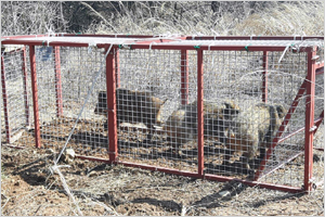 이번 현장설명회에서 소개하는 멧돼지 포획트랩은 외국에서 사용하던 포획트랩을 개선해 만들었다. 유입구가 기존 위·아래인 여닫이 상자 형태의 트랩을 위·아래, 왼쪽·오른쪽 여닫이로 두 군데 설치한 것이 특징이다.