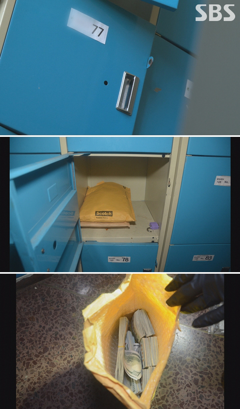 그 중 분홍색 자물쇠로 굳게 잠겨있던 77번 사물함을 강제개방하자 ‘서류봉투 4개’가 나왔다고 한다. ‘봉함된 봉투 3개’와 ‘열려있는 봉투 1개’에 들어있던 것은 5만 원짜리 1,800장(9000만원), 100달러 지폐 1,000장(약 1억1000만원) 등 총 2억 원이었다.