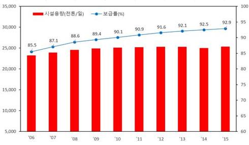 2015년도 하수도보급률은 전년 대비 0.4%p 증가한 92.9%로 나타났다.