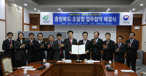 [시사인경제] 충청북도와 조달청은 29일 오전 11시 20분 충북도청에서 지역 벤처·창업기업 제품을 조달청 벤처나라에 등록해 공공조달 판로를 지원하기 위한 업무협약(MOU)을 체결했다고 밝혔다.