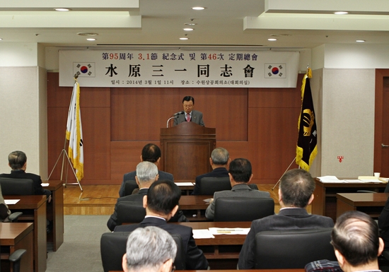 한편 이날 기념식에는 이원근 회장을 비롯해 우성균 명예회장, 차희상 사무처장, 신현태 전 국회의원, 김용서 전 시장, 심상호, 김효배 수원시의회 의원, 엄익수 녹색환경보전연합회장 등 회원 40여명이 참석해 3.1정신을 다시 한번 되새기고, 정기총회를 통해 회원간의 결속을 다지는 뜻 깊은 자리를 함께했다.