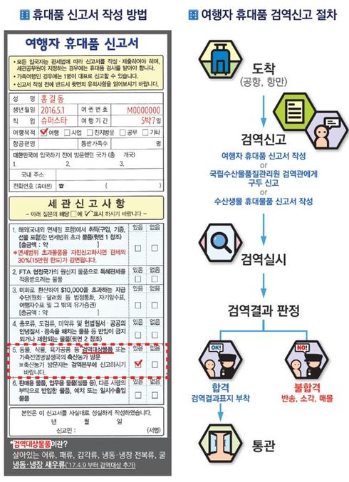 | 여행자 휴대품(수산생물) 신고서 작성방법 및 절차 |