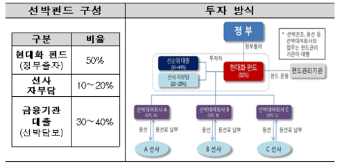 해수부는 이 사업을 위해 올해까지 350억원의 펀드를 조성하였으며, 2019년까지 약 1,000억원으로 펀드 규모를 확대할 계획이다. 선사들의 참여를 독려하기 위해 5일(수)에는 목포에서 선사들을 대상으로 사업 설명회도 개최할 예정이다.