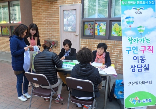 오산시 일자리센터에서는 기존에 교통불편과 정보부족 등으로 일자리센터를 직접 방문하기 어려운 구인·구직자들을 위해 매주 1회 다중집합장소(마트, 스포츠센터, 아파트 알뜰장터 등)에 구인·구직 이동상담실을 운영, 계층·분야별 종합일자리 정보를 제공해 왔다.