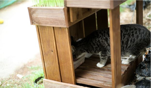 길고양이 급식 시설은 가로 66㎝, 세로 45㎝, 높이 60㎝ 규모의 나무 재질로 만들어졌다.