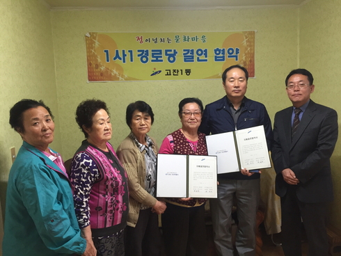 [시사인경제] 안산시 고잔1동은 지난 6일 부옥물산(주)과 현대2차경로당이 ‘1사1경로당 자매결연’을 맺었다고 밝혔다.