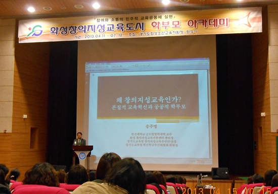 【경기인뉴스】채의선 기자 = 교사와 공무원가 중심이 되어 이끌어가던 창의지성교육의 바통을 학부모가 이어받아 화성의 교육미래가 더욱 밝아질 전망이다. 화성시(시장 채인석)와 화성오산교육지원청(교육장 구교열)은 지난 15일 화성오산교육지원청 대강당에서 화성시창의지성교육지원센터와 학부모가 기획 운영하는 ‘창의지성 학부모 아카데미’개강식을 가졌다. ‘창의지성 학부모 아카데미’올해 12월 까지 계속되며, 초․중․고 창의지성교육 모델학교 42개 학교를 포함해 화성시 관내 모든 학교에서 신청 등록한 500명(기초과정 400명, 심화과정 100명)의 학부모를 대상으로 추진된다. 기초과정은 관내를 5개 권역으로 구분하여 권역별 총 13강의 교육 과정이 운영되며, 심화과정은 2012년도 기초과정을 수강한 수료자를 대상으로 4개 과정을 개설해 3개월 동안 주 1회씩 강의가 진행된다. 주요 강의 내용은 창의지성교육의 이해와 학부모의 역할, 독서법, 독서와 통합적 사고력 기르기, 학교 폭력의 실태와 대처, 세상을 배우는 박물관과 체험 등으로 설계되어 있다. 화성시창의지성교육지원센터와 함께 기초 및 심화과정을 직접 기획 및 운영하고 있는 반송중학교 학부모 이정숙, 화성 금곡초 학부모 김정해씨는 “부모가 주도적으로 교육의 지향점을 찾고 아이들과 소통하며 자기주도적인 삶을 살아야 현행의 교육이 창의지성교육으로 바뀔 수 있다”고 입을 모으며 “이번 아카데미가 더욱 좋은 과정으로 지속성을 가지고 운영되길 바란다”고 말했다.