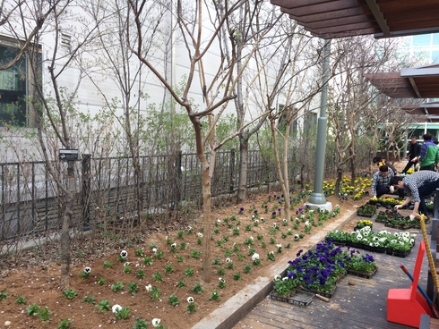이날 회원들은 청사 주변 화단에 리빙스톤데이지, 팬지 등 봄꽃 1천여본을 심고 제초작업 등을 실시해 화단 주변을 정리했다.