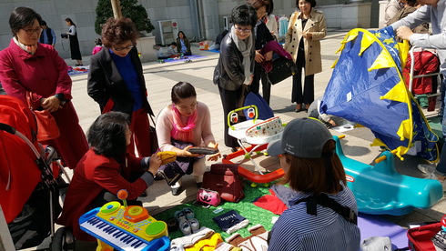 | 수원시청 별관 앞에서 열린 육아·아동용품 플리마켓(벼룩시장) 현장 |