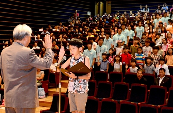 【경기인뉴스】박진영 기자 = 올해로 열 번째를 맞은 화성시 E-School 여름방학 캠프 입학식이 지난 29일 수원대학교 벨칸토 아트센터에서 학생과 학부모 등 500여명이 참석한 가운데 성황리에 개최됐다. 체계적이고 지속적인 외국어 교육 지원으로 실용영어 능력을 배양하고 세계화 시대에 걸맞은 21세기 글로벌 인재육성을 위한 화성시 E-School 여름방학 캠프는 관내 초등학교 3학년 ~ 6학년 250명(저소득층 25명 포함)대상으로 수원대학교 국제어학원에서 29일부터 다음달 16일까지 3주간 원어 체험기회와 영어에 대한 흥미를 유발하는 프로그램들로 진행된다.