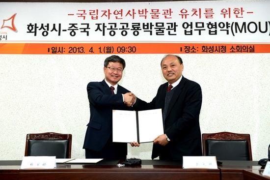 채인석 화성시장의 요청으로 지난달 31일 화성시를 방문한 펑광자오(팽광조) 박물관장과 일행은 이번 MOU 체결을 통해 화성시의 국립자연사박물관 유치와 건립에 필요한 기획, 박물관 관리, 프로그램 및 지원 활동, 사전 준비 활동 등 박물관 운영 등에 협력하기로 했다.