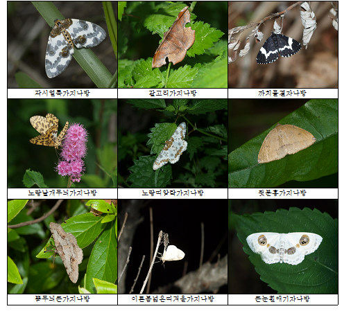 또한 겨울자나방, 점여섯물결자나방 등 기록상 이름만 알려진 종이나 북한 지역에서만 사는 것으로 알려진 긴줄가지나방, 북방얼룩가지나방 등도 포함됐다.