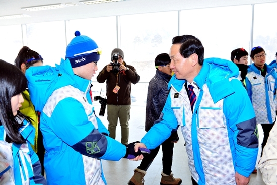 【경기인뉴스】채의선 기자 = 김상곤 경기도교육감은 26일, 강원도 평창 알펜시아 크로스컨트리 경기장에서 제95회 전국동계체육대회 참가 학생선수들과 관계자들을 격려하고 경기를 관람했다. 김 교육감은 이 자리에서 학생선수들에게 “여러분의 어깨에 경기학생체육의 명예가 걸려있다”며, “어려운 조건 속에서 힘차게 달려온 만큼 그간 고생과 땀과 눈물이 모두 이곳에서 승리로 우승으로 성과로 피어나기 바란다. 갈고닦은 기량 충분히 발휘해 자신과 학교․고장의 명예를 드높이기 바란다”고 말했다. 이번 동계체전의 도내 학생선수는 남자 155명과 여자 117명 등 초중고 102교의 272명이다. 빙상, 스키, 바이애슬론, 컬링, 아이스하키 등 다섯 개 종목에 참가하여 그동안 갈고 닦은 기량을 뽐내고 다른 지역 선수들과 우정을 나눈다. 국내 겨울스포츠의 최대 축제인 동계체전은 이 날 개막하여 오는 3월 1일까지 나흘 간의 열전에 돌입했다.