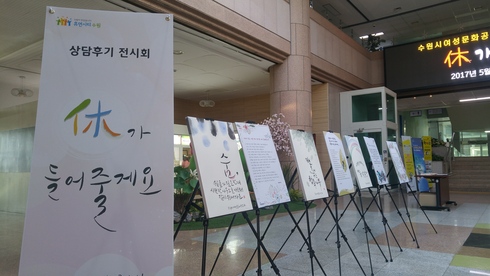 [시사인경제] 수원시 여성문화공간 휴(休)가 개관 3주년을 맞아 심리상담 서비스를 이용한 여성들의 상담 후기 전시회 ‘休가 들어줄게요’를 19일까지 수원시청 1층 로비에서 연다.
