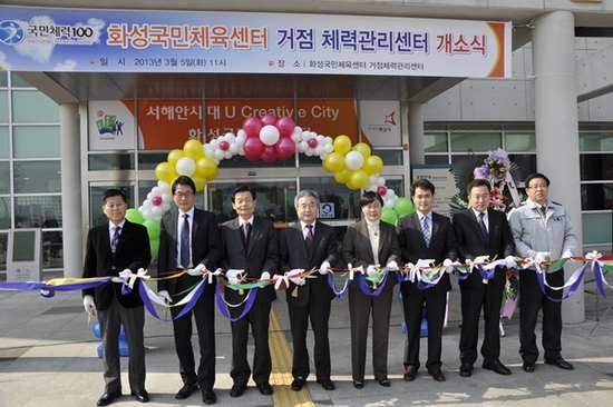 【경기인뉴스】이연수 기자 = 문화체육관광부가 추진하고 국민체육진흥공단이 주관하는 국민체력100사업 지역별 14개소 거점체력관리센터로 화성도시공사 화성국민체육센터가 선정되어 지난 5일 화성국민체육센터에서 개소식 행사를 가졌다. 이 날 행사에는 김행님 화성시 교육복지국장 및 이승철 화성도시공사사장 등 관내 유관기관 임직원 100여명이 참석했다. 국민체육진흥공단이 주관하는 ‘국민체력100 사업’은 성인(만19세~64세) 및 어르신(만65세 이상)을 대상으로 국가주도의 과학적 체력관리 프로그램 제공 및 개인 체력수준의 객관적 분석과 체력수준별 맞춤형 운동프로그램을 제공하는 국책사업으로 화성국민체육센터에서 3월 6일부터 11월 22일까지 약 8개월간 무료로 운영하게 된다. 화성국민체육센터 임직원은 거점체력관리센터 운영에 만전을 기하여 화성시민에게 수준 높은 체육복지서비스의 혜택을 누릴 수 있도록 최선을 다할 것을 다짐했다.