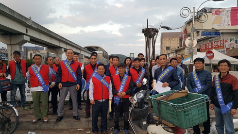 이날 생활민원과 직원과 용인중앙시장 상인회 등 30여명은 5개팀으로 나눠 금학천 도로변과 중앙시장 일대에서 무단투기를 단속을 실시해 2건을 적발했다. 또 상인들에게 올바른 쓰레기 배출방법을 안내하고 홍보물 배부도 실시했다.
