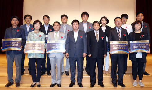 정찬민 이사장은 이 자리에서 용인정보고, 현암중, 죽전초등학교 등 올해 선정된 11개 미래인재학교에 현판을 전달했다.