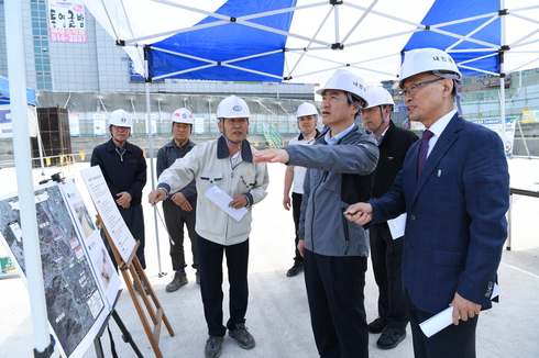 남기산 구리시 부시장의 안내로 진행된 이날 점검에서 이재율 경기도 행정1부지사는 현장에서 추진상황을 보고받은 뒤 공사 현장을 둘러보고 관계자의 노고를 격려하는 한편 안전사고 예방에 각별히 신경 써 달라고 당부했다.